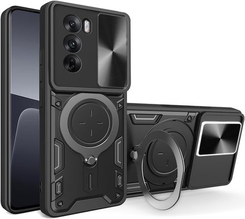Suitable for Tecno Camon40 Pro (with sliding camera window, stand, TC+TPC material, shockproof and scratch-resistant dual-layer phone case, black)