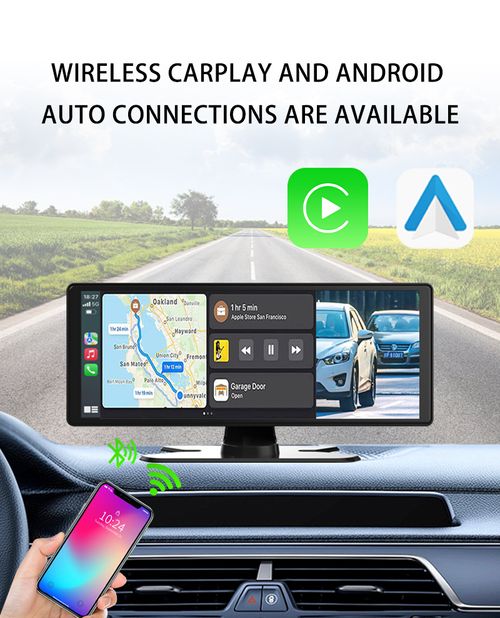 10.26-inch wireless Apple CarPlay and Android Auto in-car screen with 4K dashcam, 1080p rearview camera, Bluetooth, GPS navigation, voice control, Mirror Link function, portable car audio system, compatible with all car models (dashcam + rearview camera).