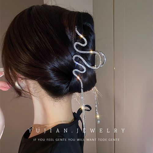 FMURY Glitter diamond tassel chain scrunchie clip female back of plate hair clip hair accessories