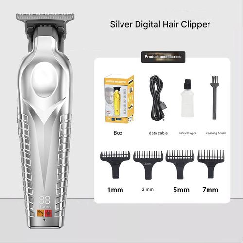 Men's electric hair clipper, designed for styling, fast charging, digital display, won't snag hair, perfect for detailed haircuts (shipping included, cash on delivery available). Silver version.