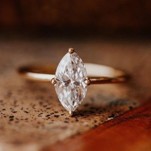 Marquise-cut diamond ring, plain band ring, fashionable and luxurious ring