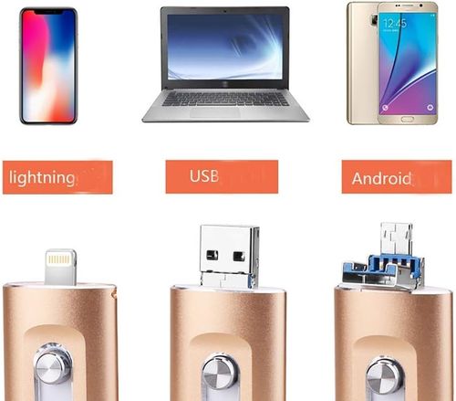 Watch-shaped USB flash drive, a 3-in-1 USB 3.0 high-speed mobile flash drive, suitable for mobile phones, tablets, and computers (gold).